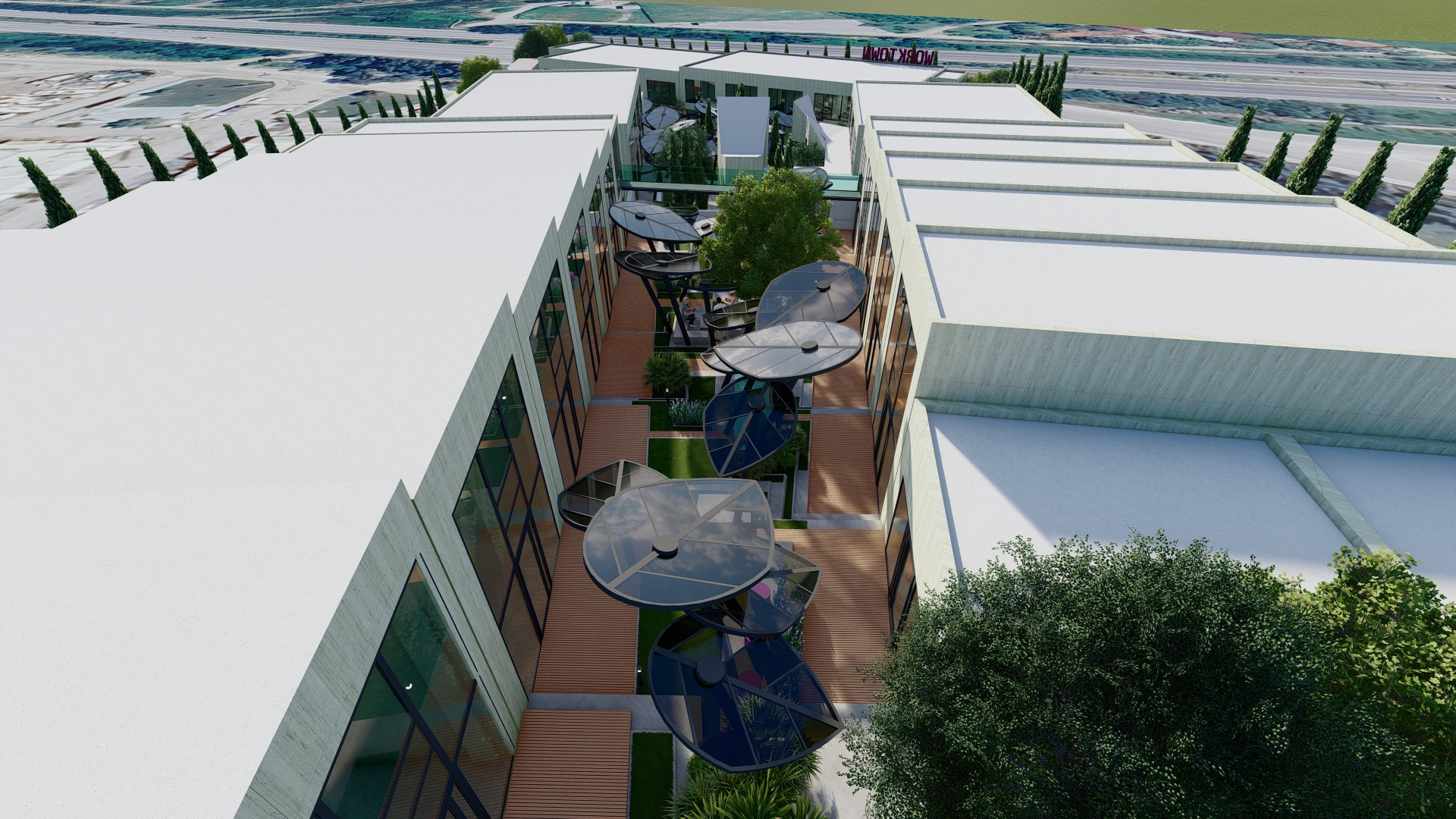 Worktown Center, İzmir Güzelbahçe'de, Çeşme Otobanı'na sıfır konumda yer alan kurumsal odaklı bir projedir. Yüksek erişim ve görünürlük avantajı sunar. Yaklaşık 7.000 m² brüt kapalı alana sahip olup kapalı otoparkı bulunmaktadır.